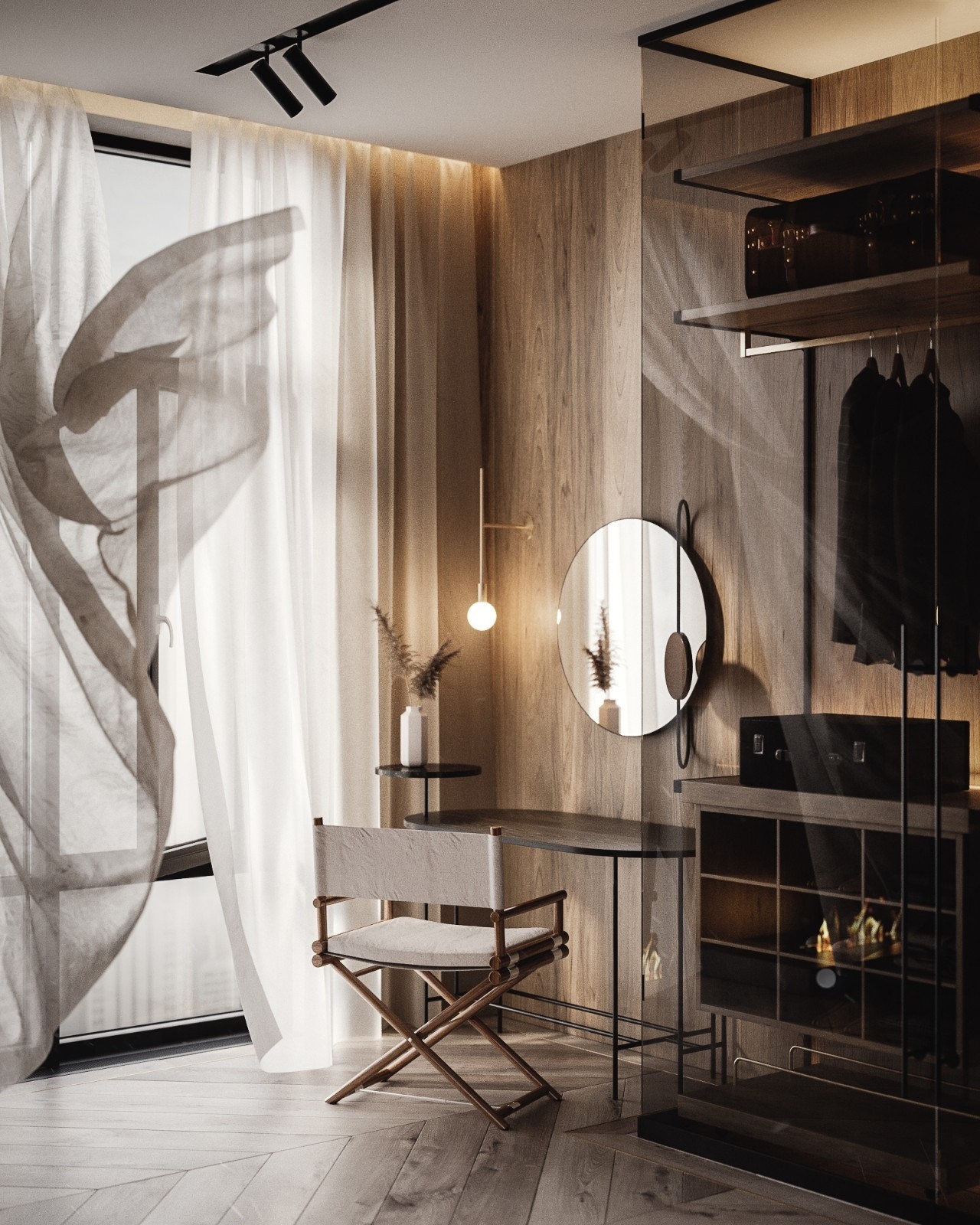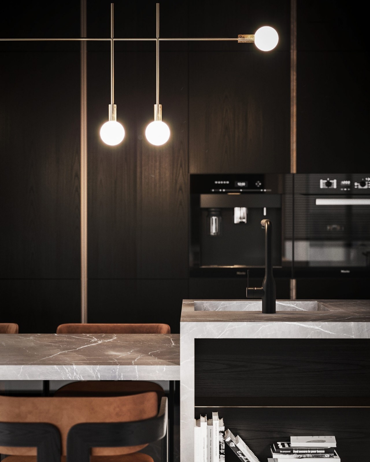 设计理念:整个屋子通过地面的高低差隐形分割功能区,下沉玄关,抬高的休闲区,让空间界而未界,获得大宅的舒适敞阔体验。焦糖色的空间,以交度营造高级感,幽暗的中性调,收敛外界的浮躁和烦乱的思绪。马革皮橘调沙发画给暗色的空问带来一抹年轻活跃的色彩 从而使空间沉稳却不显得老气整屋都采用各种点光源重点照明局部 格栅带来光影变化,在空间形成明暗对比,营造出柔和温暖的氛围感和仪式感。所以无论是视觉上还是居住感,都是温馨又精致的都市品味生活