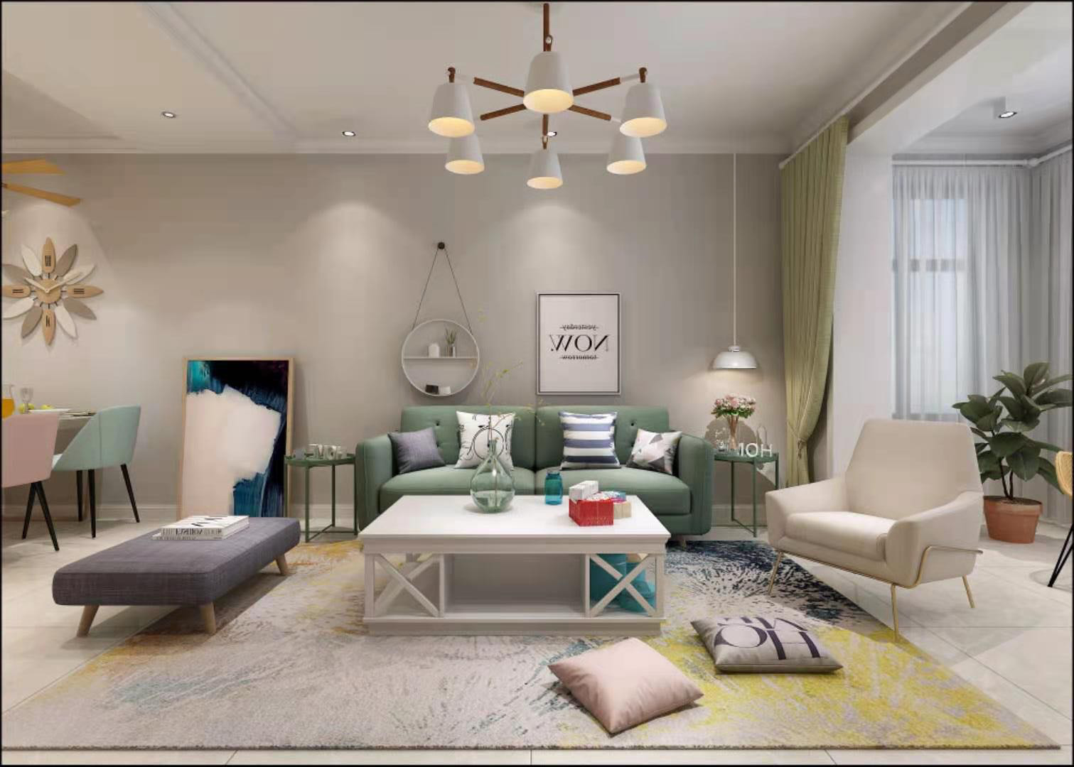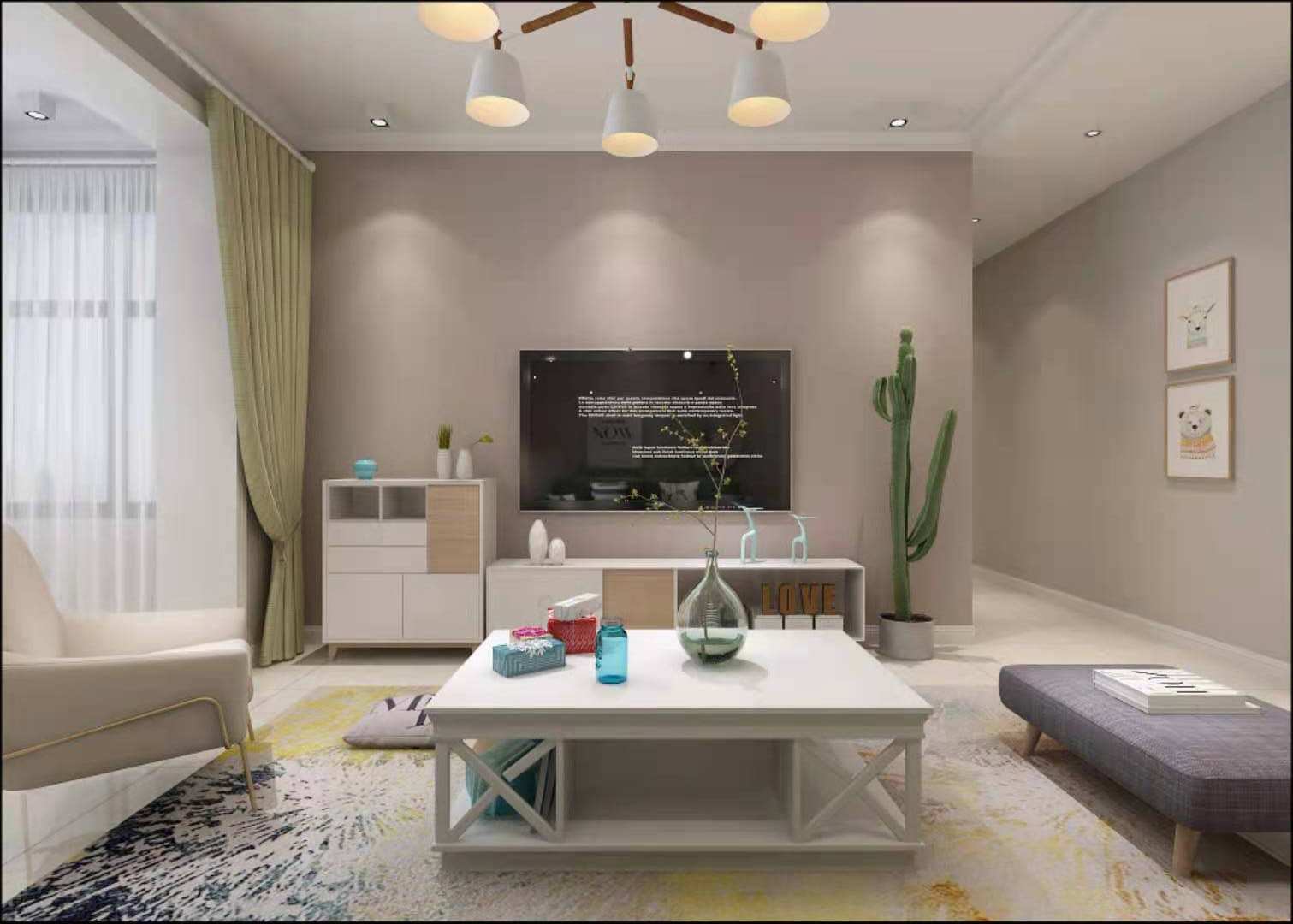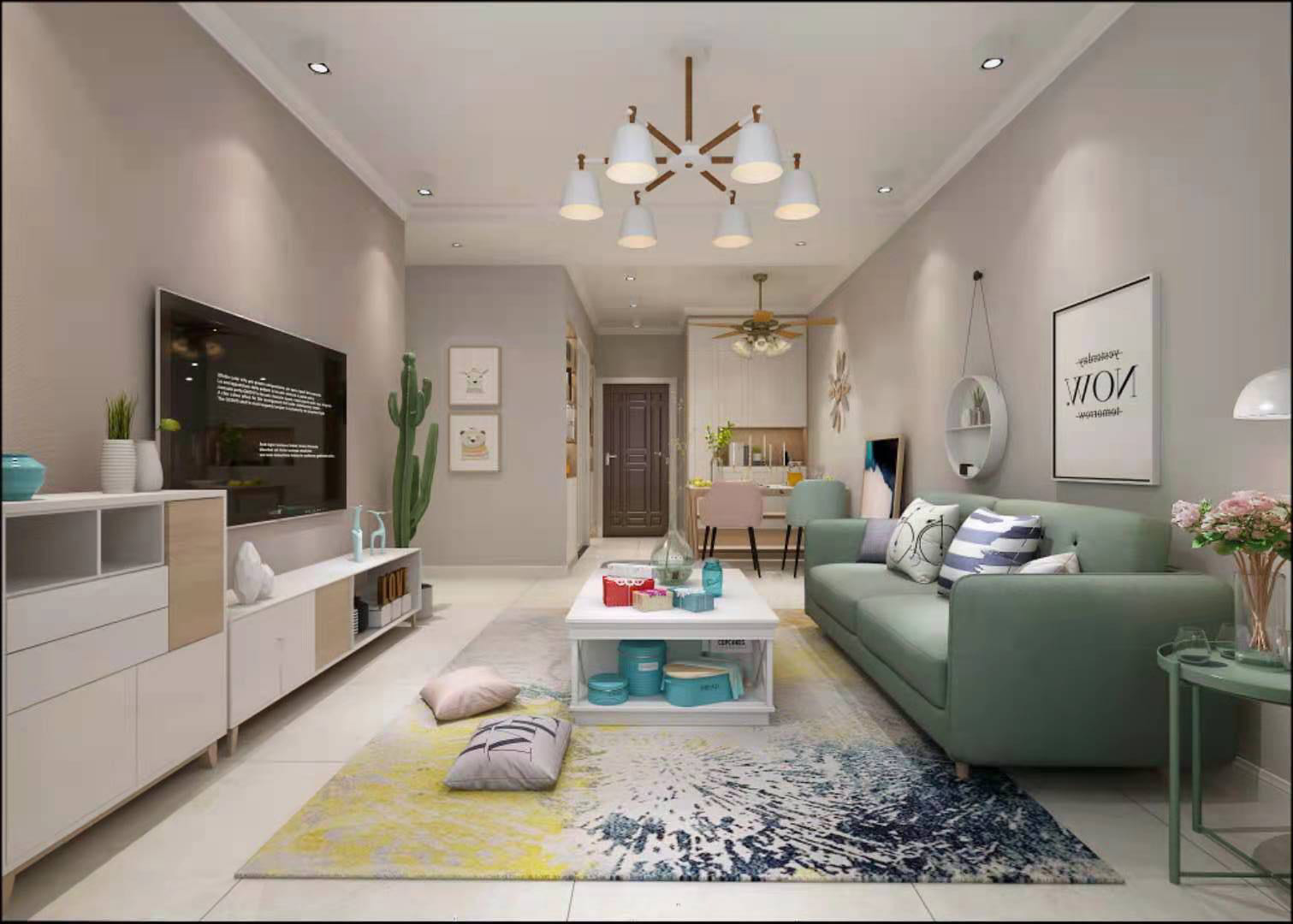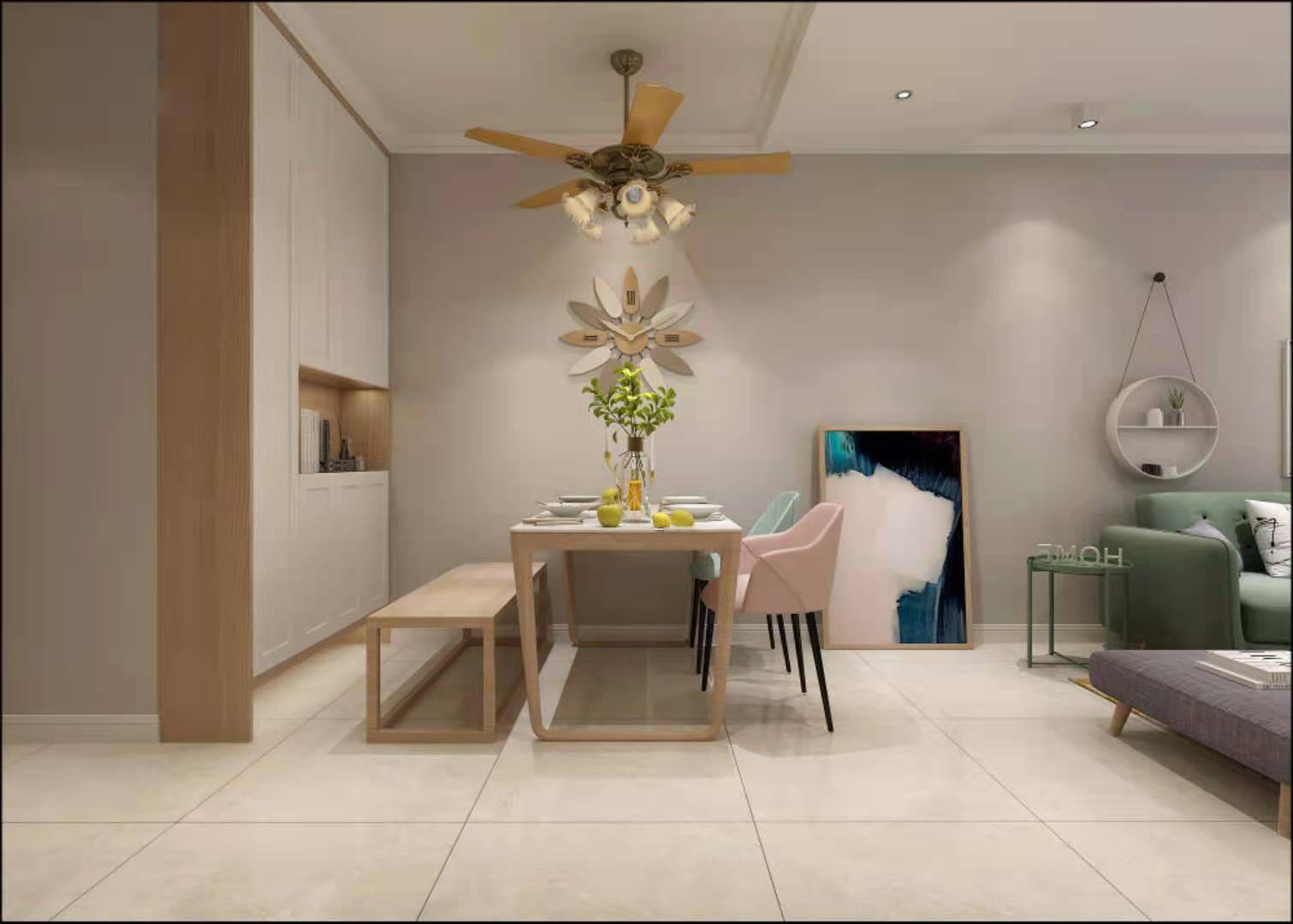 设计理念:业主比较喜欢简约清新风格,对房间内设计要求比较高,在沟通过程中对品质要求,以及整体空间的合理性及利用率要求比较高,整体空间偏清新,卧室想要温馨一些。