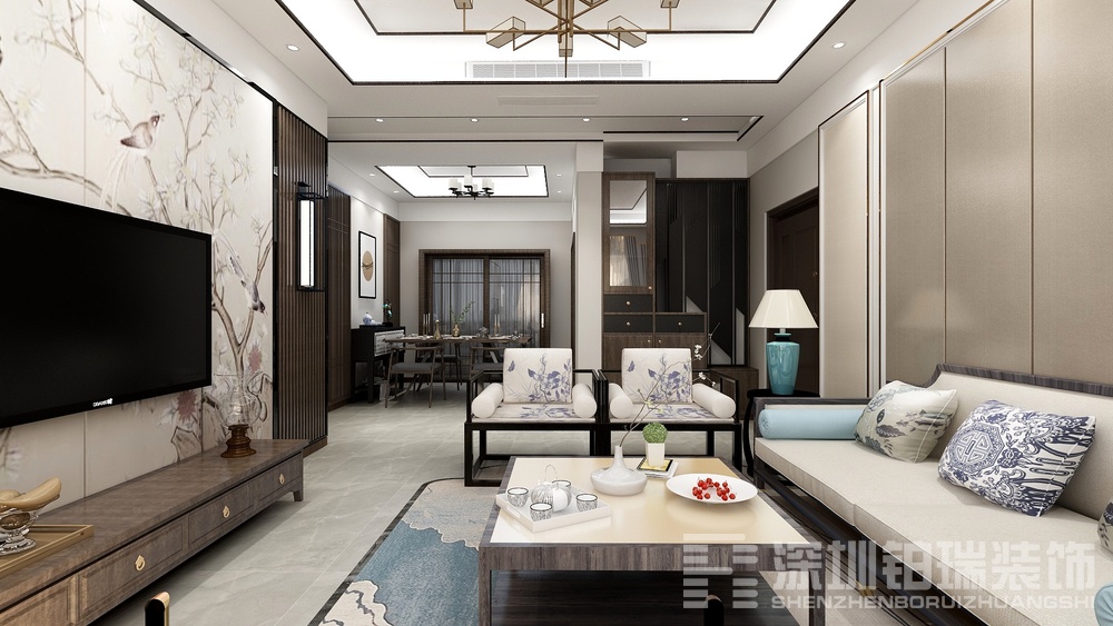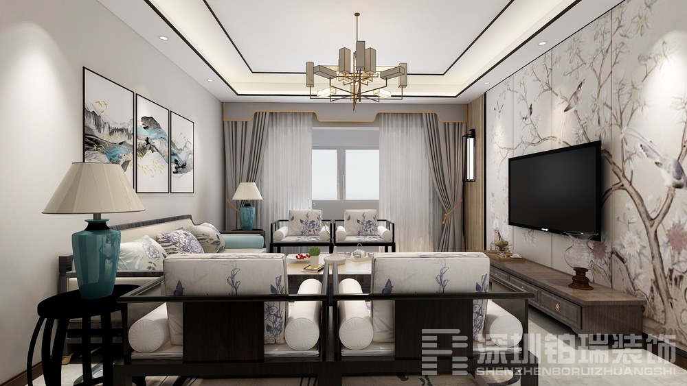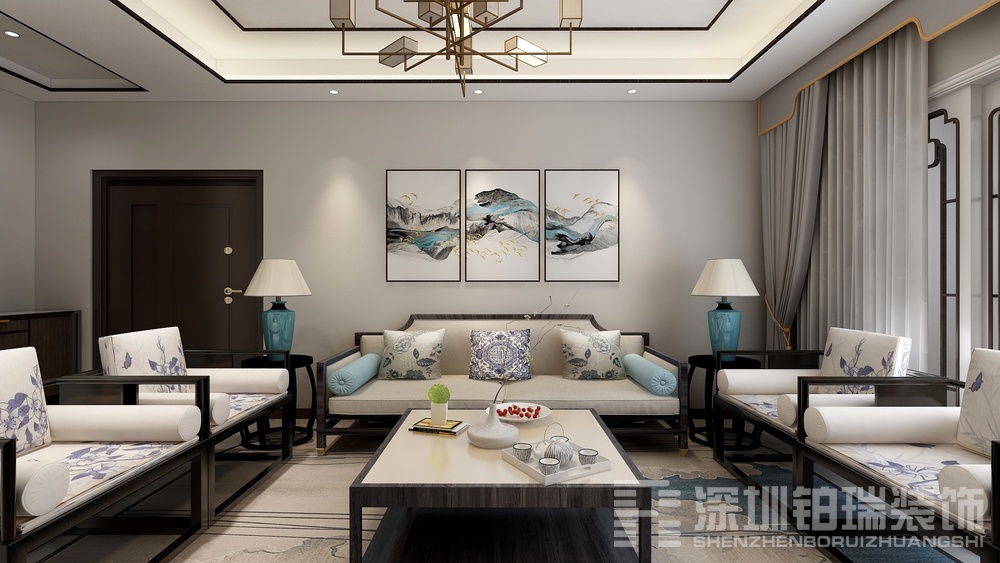 设计说明:新中式的”新“在于大胆的创新与改良,突破传统的审美标准,创造出一种符合现代人审美的风格。新中式没有局限于传统文化的禁锢中,而是将现代的元素完美的融入,不仅有传统的高雅古韵之感,也带着现代的气质与精致,让人一眼看上去就会产生一种情有所终的感觉。