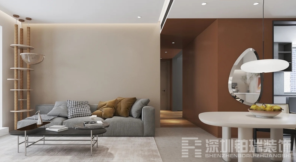 设计说明:本案以白色,灰色,橙色色调为主,并配以部分原木色系的家具以及木地板,以营造出洋气与新奇的空间氛围感设计。将全屋用色高度提炼且个性明显的空间,白色带来的整洁感撞色橘色渲染的艺术气息,也提升了空间的温馨感,是年轻感及时尚感的赋予,还是边界感的含蓄表达。