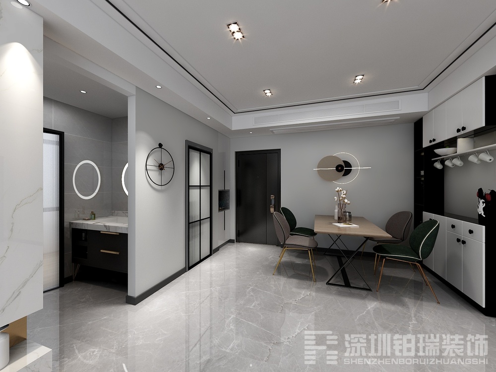 设计说明:现代轻奢侈与色彩的运用形成了鲜明的对比。高级黑色和高级灰色作为一种表现,给人一种空间整洁的感觉。并将添加亮度较高的原木色、象牙白色等,呈现一种温馨的氛围、时尚典雅的风格。