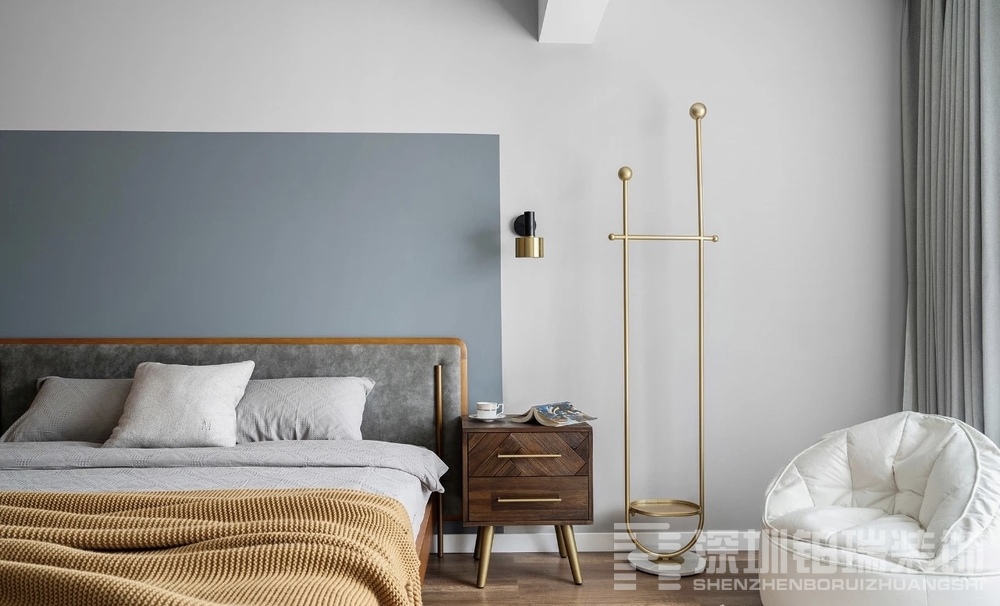 设计说明:本案以墙面乳胶漆跳色温馨色调,地面木地板显示出整体风格的质感,浅灰与白色拼色出来的极简感觉营造令人深刻的独有风格,让人为其背后的艺术美感所折服。