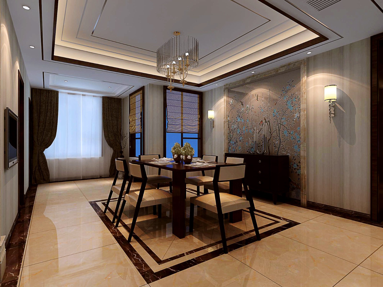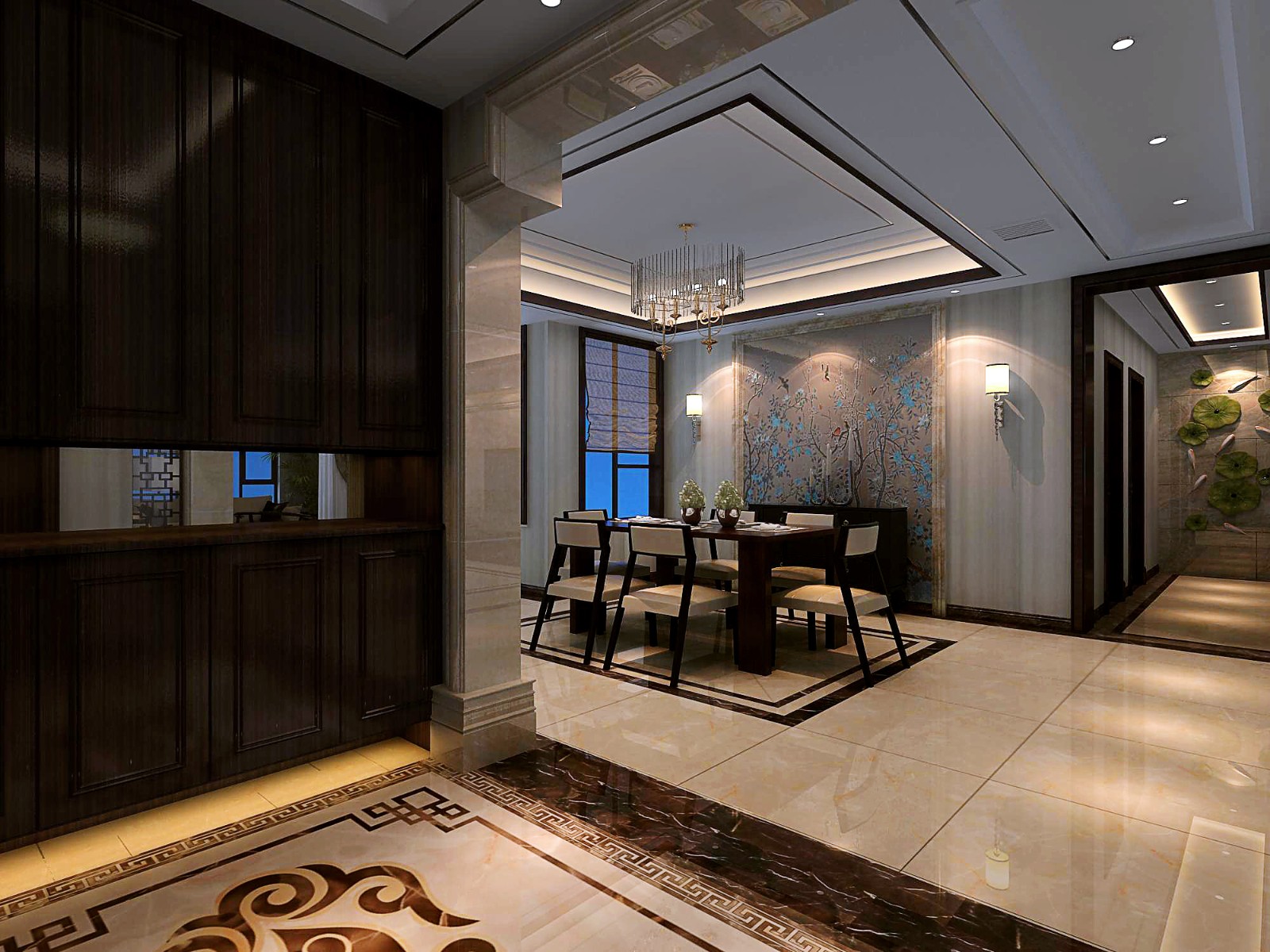 处处见景、处处是景,注重生活品质和细节,在装饰设计中所采用的任何一个小件(线条、图案等)都要求清晰明确,毫不含糊,做到”细节重于上帝“的设计原则。本次案例定位新中式也贴合我们女主人时尚有魅力的品味,在中式中添加了很多现代感比较突出的材质,石材电视墙这些的在空间上的运用,家具款式的选择来呼应客户的风格要求
