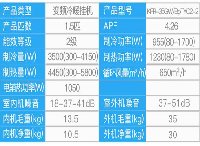 这种空调的制冷量是3500W,也就是导购人员所说的“35型”的空调。